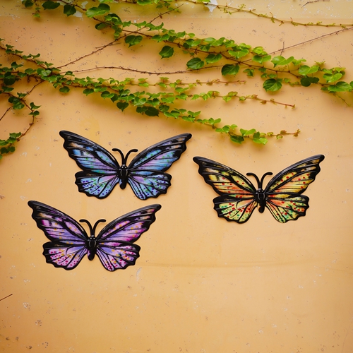 When you was a kid who liked to catching the butterflies.When they flying around you, you always want to catch it .But now, you needn?t catch it and it will stay in you house.You can decorate in your room, garden, corridor, backyard or even on your door, anywhere just you can see it.Just like your friend accompany your life.FeaturesMaterial:IronBionic designRust protectionThe wings are foldableCircular hole design for easy suspensionTip.